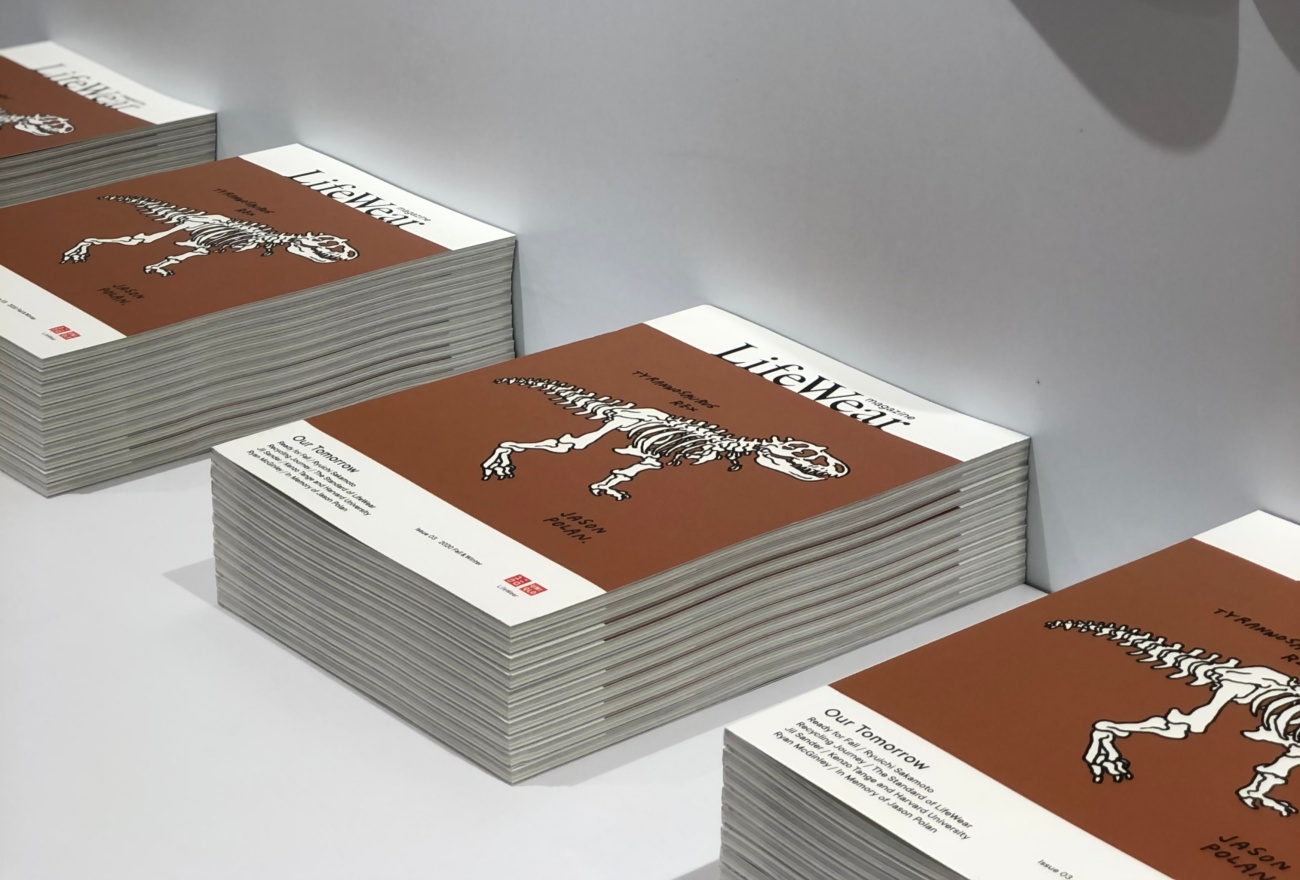 Sebagai penghormatan buat seseorang yang istimewa di mata keluarga besar UNIQLO, kulit majalah LifeWear edisi ke-3 ini mempamerkan lakaran Tyrannosaurus rex yang dilakar oleh mendiang Jason Polan, yang telah pun meninggal dunia pada Januari lalu di usia 37 akibat kanser. Jason Paul adalah seorang artis yang pernah berkolaborasi dengan UT menerusi tiga acara pada Januari 2020 dan kamu boleh baca kisah lanjut mengenainya menerusi majalah LifeWear kali ini di muka surat 115.
